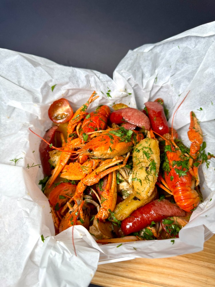 (S) Раки тушковані у сметані з часником і кукурудзою (замовлення від 1 кг)